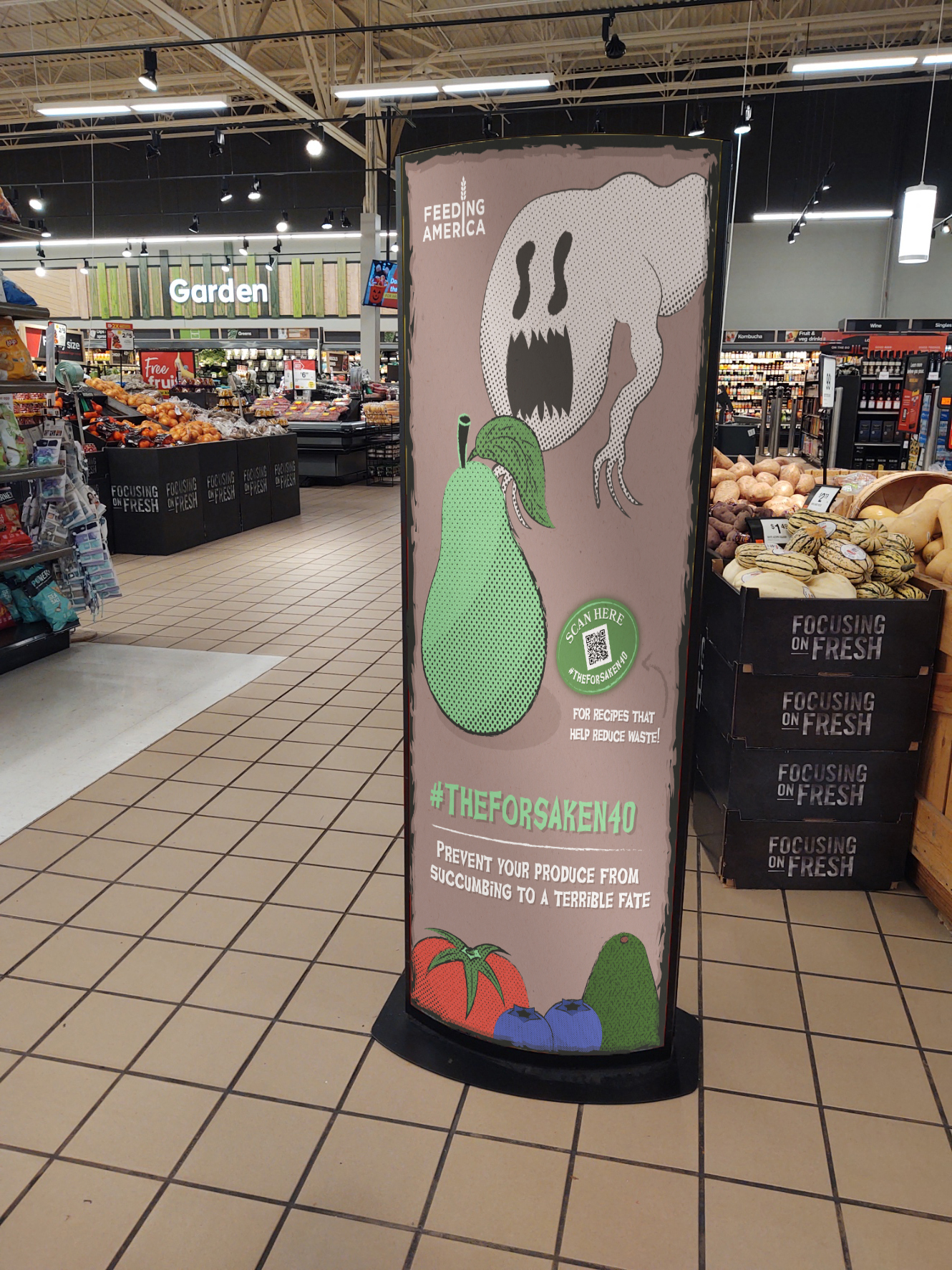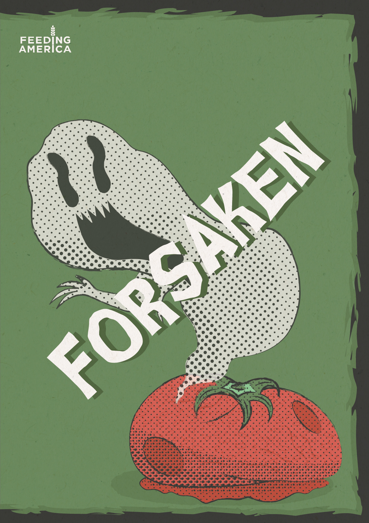 when it goes to waste. Textures and halftones along with dark muted colors were used to enhance the retro feel. #THEFORSAKEN40 encourages food shoppers to think before they buy.