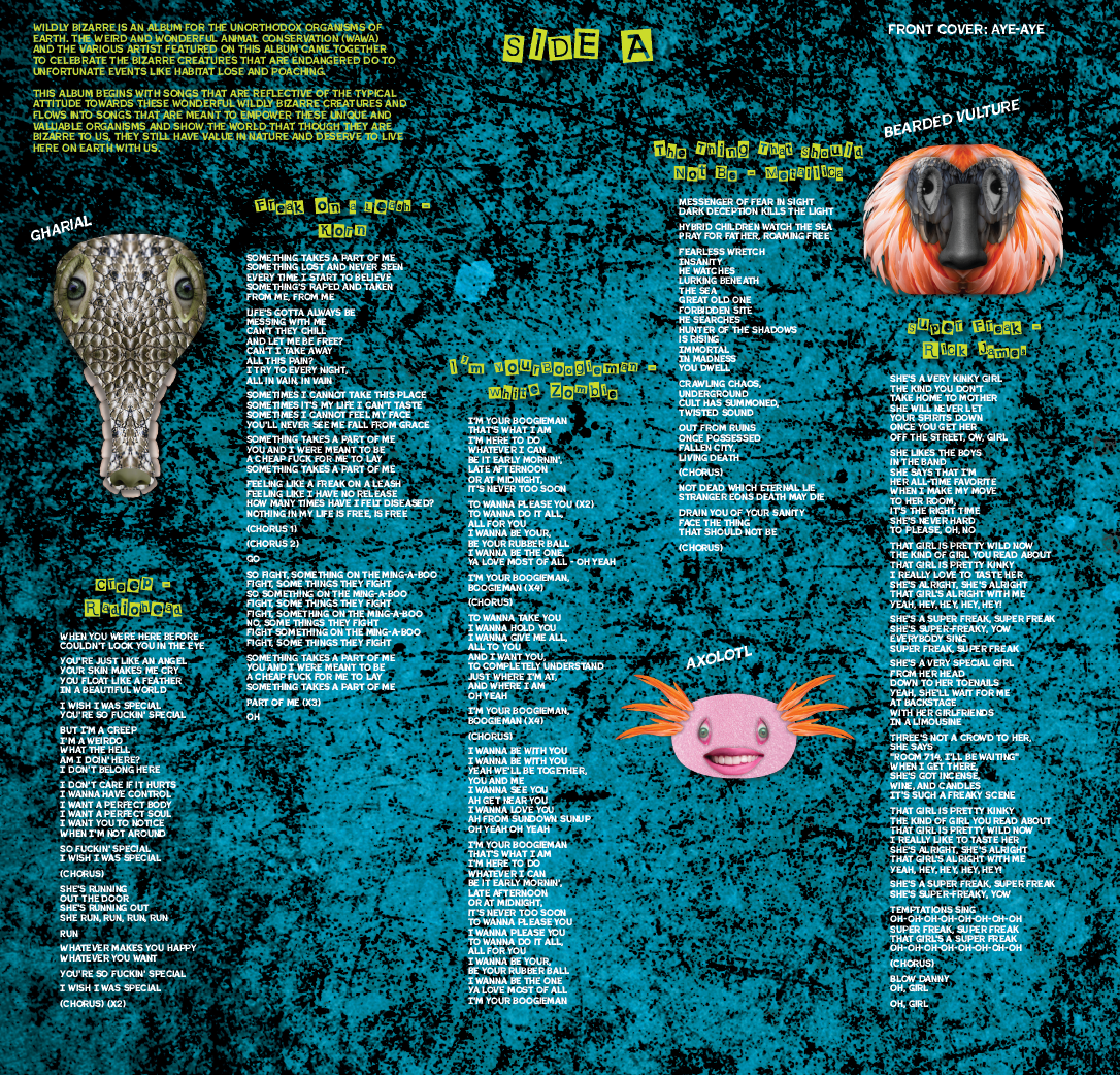WILDLY BIZARRE is an album collaboration between the non-profit Weird and Wonderful Animal Conservation