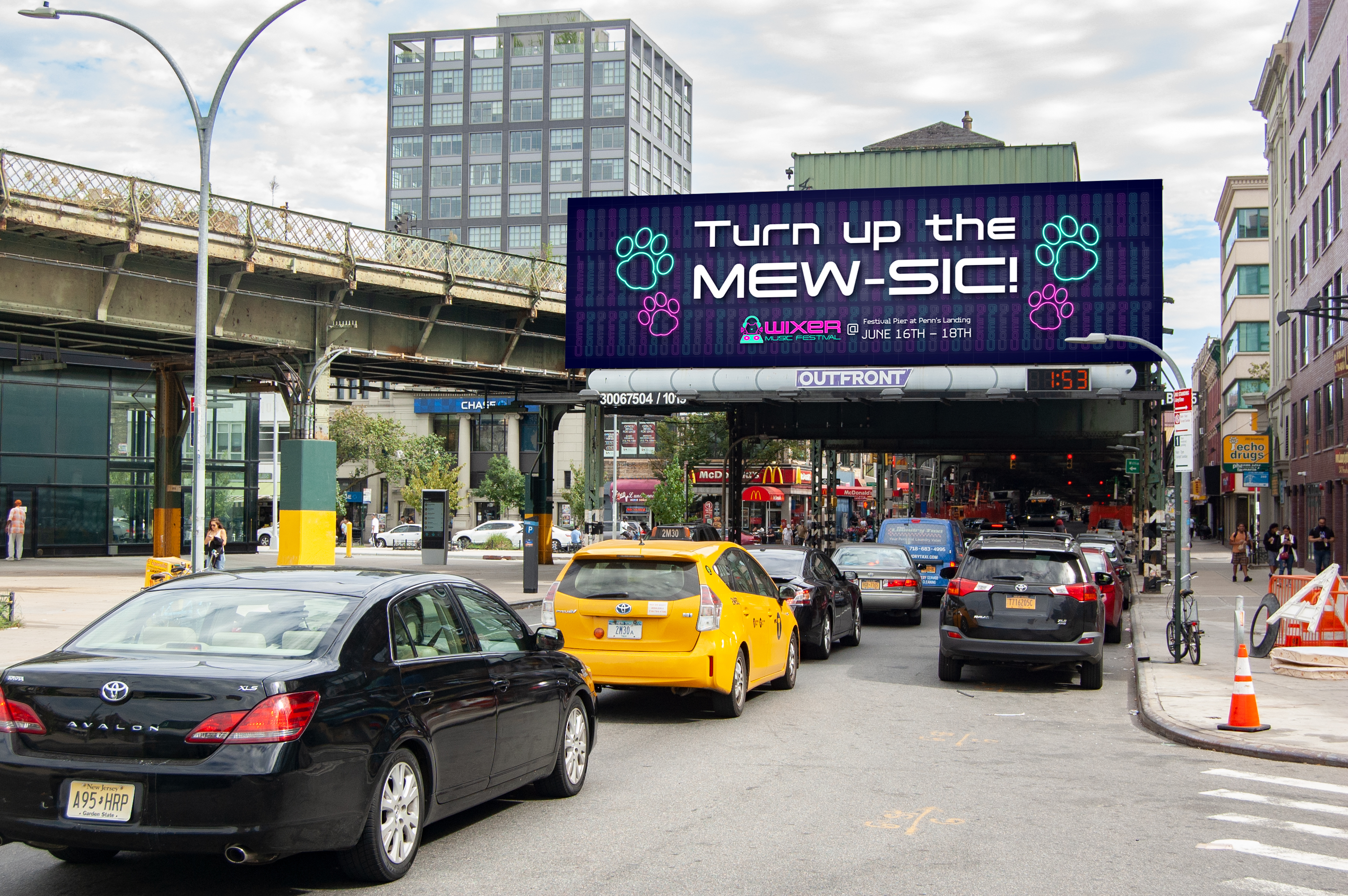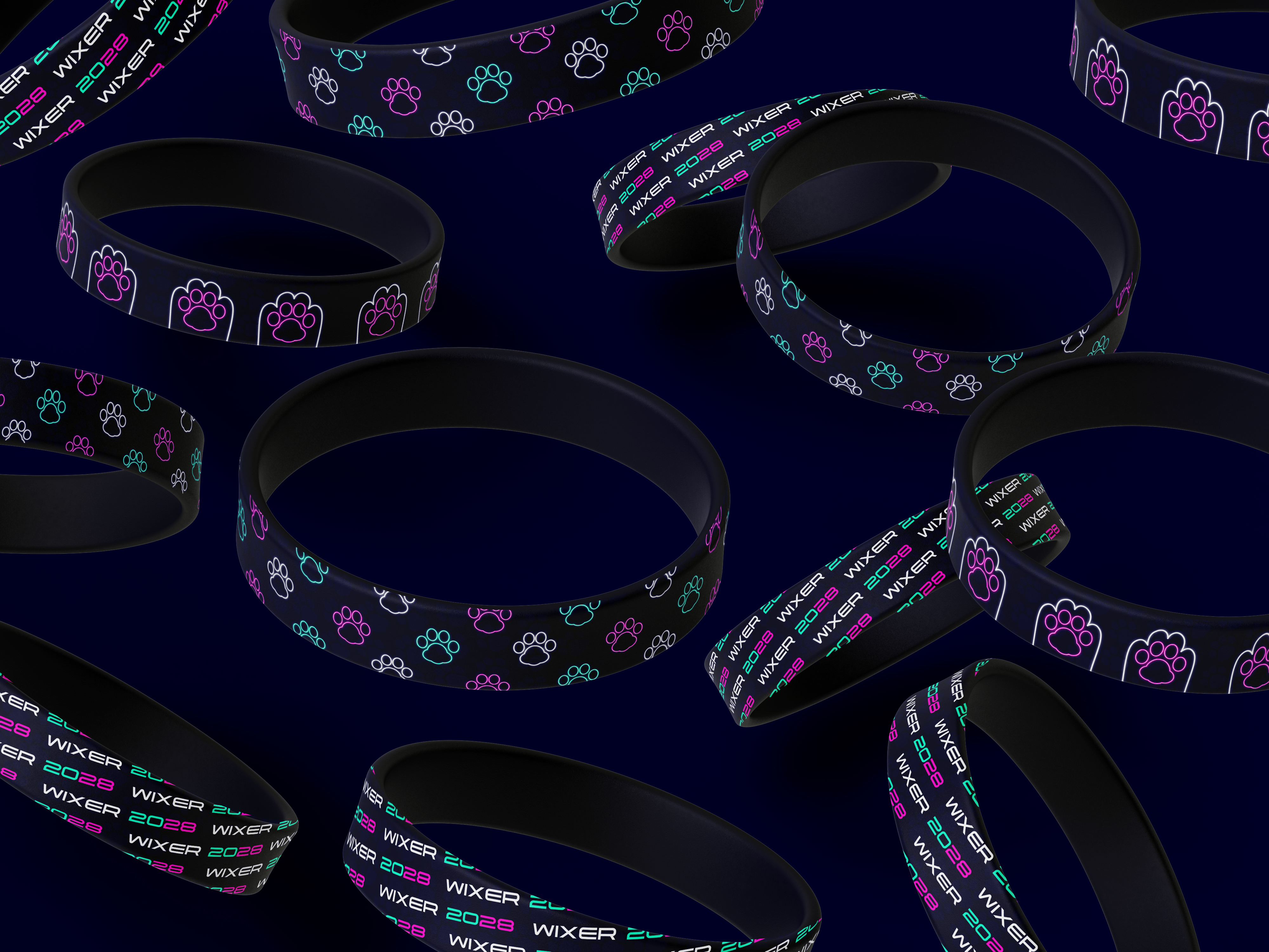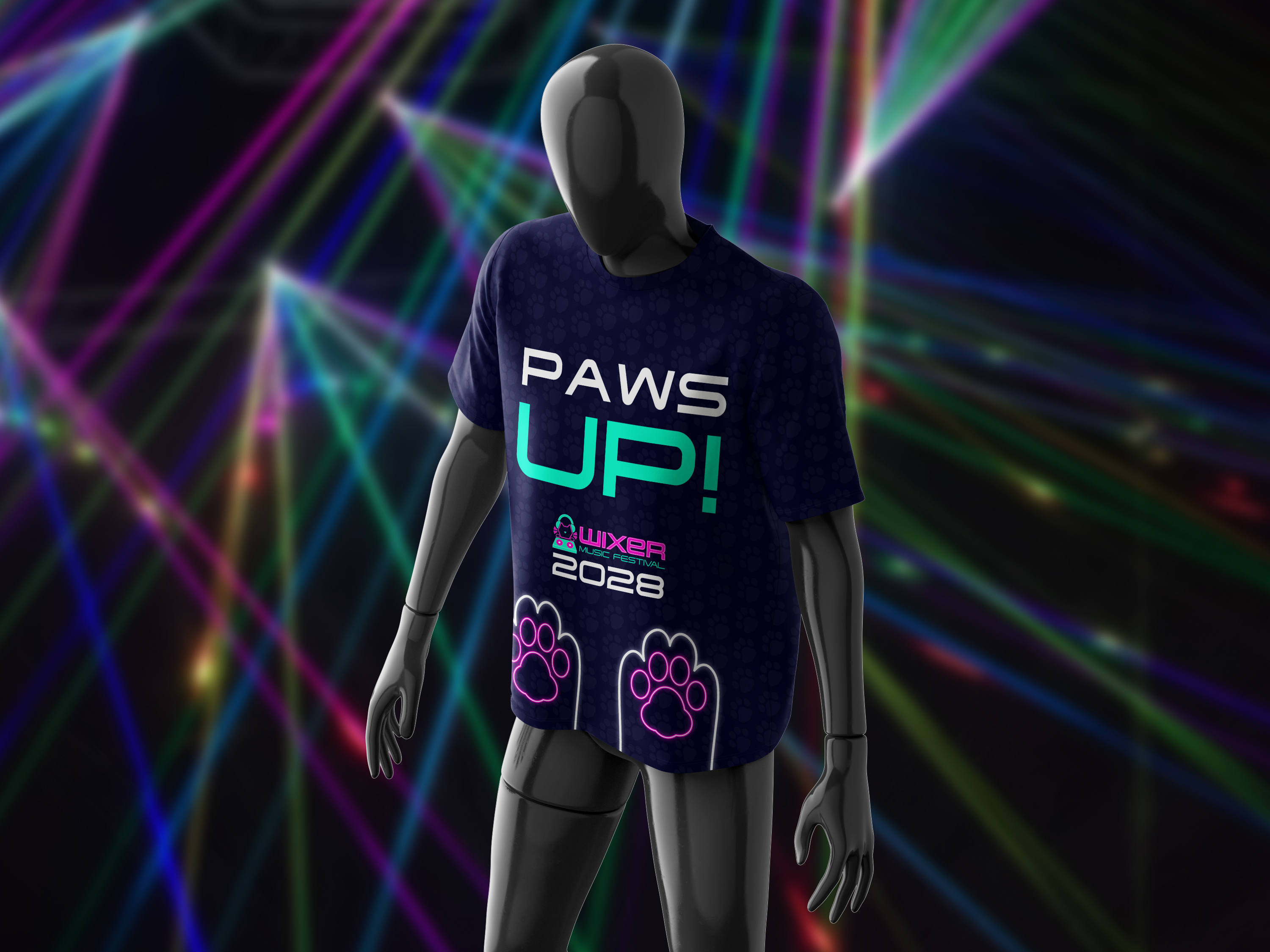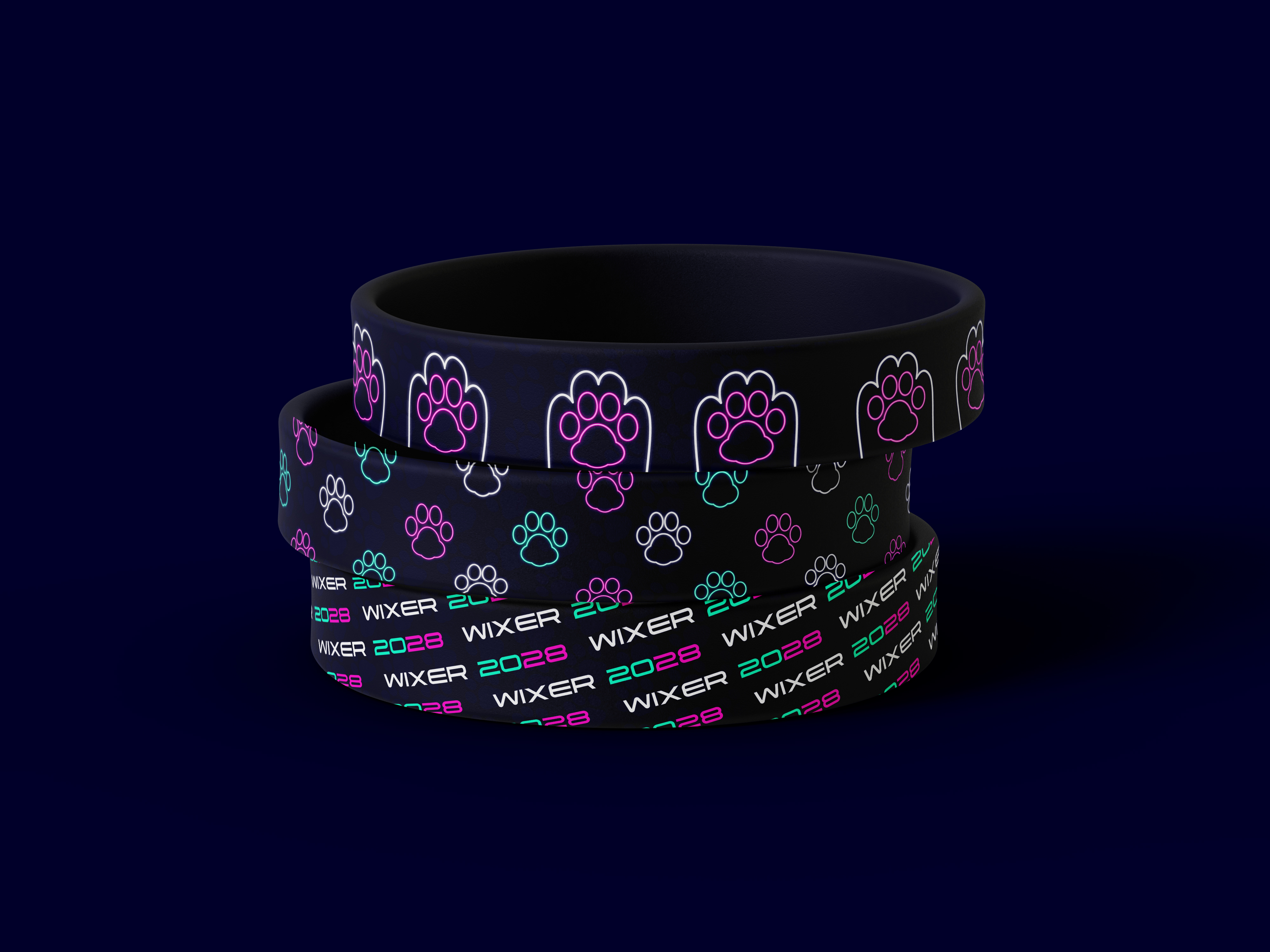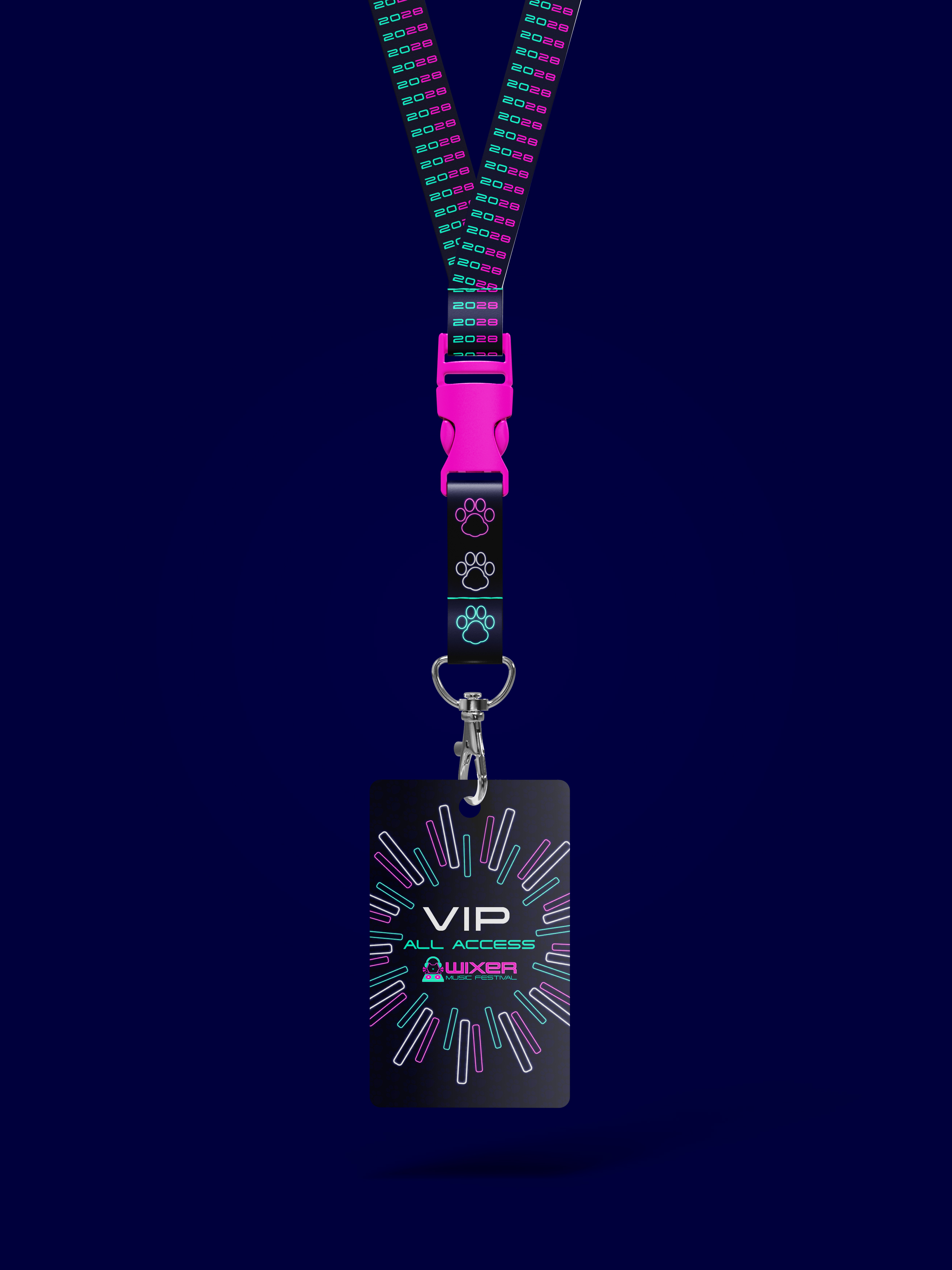 WIXER is a cat themed EDM festival where the music itself was created by cats using the recorded sounds of them meowing, playing, purring, scratching and more, along with the usual EDM beats. The cats themselves are available for adoption at a special event during the festival. WIXER mixes festival fun and helps give cats a loving home. Utilizing contrast between dark and light with neon like effects, WIXER event materials are sure to cat-ch the eyes of any who walk by.